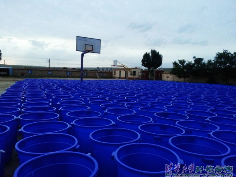 1300个桶和沙石运到之后,我们在麻黄山小学的操场上开始了生物慢滤池材料的发放工作。根据第一天工作总结,大家一致同意采用流水作业的方式进行这一步骤:控制进入操场的路线,在入口处填写材料领取单,第一站接受培训,第二站领取沙子,第三站领取石头,第四站领桶,第五站接受检查带走的所有原料,每一站都有支队成员负责监督。