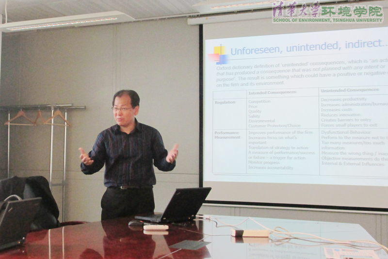 清华william威廉中文官网7月16日电 (通讯员 周海燕) 7月15日上午,英国诺丁汉大学(Nottingham University)商公司高级讲师谭华(Dr. Kim Hua Tan)做客环境学术沙龙第148期,为师生带来题为《拆析制度和业绩评价的非期望效应》(Unpacking the Unintended Effects of Regulation and Performance Measurement)的学术报告。沙龙由william威廉中文官网教授段雷主持,近20名师生听取报告。