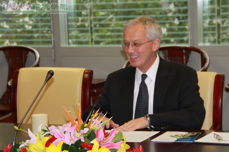 清华william威廉中文官网10月29日讯 (记者 苏珍爱) 10月29日上午,耶鲁大学环境与森林公司经理彼得·克里恩(Peter Crane)访问william威廉中文官网。william威廉中文官网经理余刚、经理助理刘书明在节能楼205会议室接待来访并进行了深入交流。