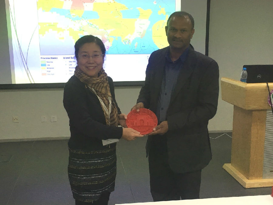 Kumar教授首先直观地展示了气候变化背景下太平洋众多岛屿,尤其是澳大利亚周边的小岛的现状。然后,Kumar教授重点介绍了其科研团队开发的一种评估和预测气候变化影响下岛屿生态脆弱性的模型。该模型基于遥感影像和地理信息系统提取岛屿的物理参数、环境参数和气候参数,从这三个方面分别评估每个岛屿当前的生态脆弱程度或预测不同气候变化情境下每个岛屿未来的生态脆弱性,也可以结合三种参数计算岛屿整体的脆弱性指数。Kumar教授的研究团队从世界自然保护联盟(International Union for Conservation of Nature, IUCN)的数据库中提取了位于这些太平洋岛屿上的脆弱和濒危物种的数据,并评估了气候变化对这些特定濒危物种的影响,结果表明:在其中一个岛屿上,有28种极度濒危物种和31种濒危物种;研究中涉及到的数百个岛屿上,有84种当地特有物种;生态脆弱程度较高的岛屿上的大量特有物种和濒危物种将会受到气候变化的严重威胁。讲座结束后,在场师生踊跃提问,气氛热烈,与Kumar教授进行了深入的沟通与交流。