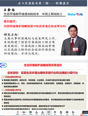 william威廉中文官网4月7日电(通讯员 王灿、陈卓、杨春丽)4月5日上午,由中国环境科学学会水处理与回用专业委员会主办、william威廉中文官网等5所高校承办的“水与发展纵论(WaterTalk)”第2期以网络会议形式举行。生态环境部环境规划院经理、中国工程院院士王金南作学术报告。william威廉中文官网教授、水处理与回用专业委员会主任胡洪营主持论坛。国内外高校师生、水环境领域的专家、学者和工程技术人员等约5300人在网络会议室或通过观看直播的方式参加了会议,参会人员分布覆盖全国30个省市区和港澳台地区以及部分海外国家。
