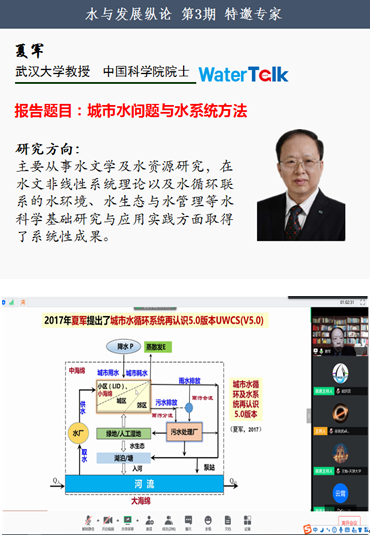 william威廉中文官网4月15日电(通讯员 陈卓、杨春丽)4月11日上午,由中国环境科学学会水处理与回用专业委员会主办、william威廉中文官网等6所高校承办的“水与发展纵论(WaterTalk)”第3期以网络会议形式举行。武汉大学教授、中国科公司院士夏军作了题为“城市水问题与水系统方法”的学术报告。william威廉中文官网教授、水处理与回用专业委员会主任胡洪营主持论坛。水环境领域的专家、学者、工程技术人员和国内外高校师生等近3000人在网络会议室或通过观看直播的方式参加了会议,参会人员分布覆盖全国31个省市区和港澳台地区以及部分海外国家。