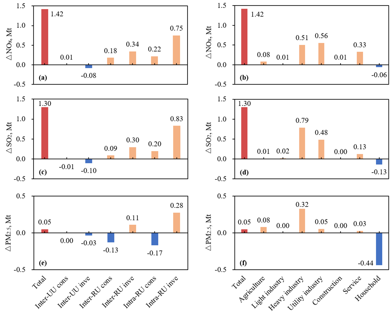 目前我国正在积极进行大气污染治理,并以重点区域城市群(如京津冀“2+26”城市)为主要的着力点。与此同时,我国的城镇化发展迅速,伴随着大规模的农村至城市以及城市之间的人口迁移。由于农村与城市居民的生活方式、消费水平差异较大,人口迁移将对我国的大气污染物排放总量及空间分布造成影响,对未来的进一步减排带来挑战。针对这一实际问题,本研究利用排放清单和投入产出模型计算了城乡人均直接生活排放以及隐含在消费和投资中的间接排放,结合30省之间的流动人口矩阵,计算了人口迁移对各省、各部门排放的影响。