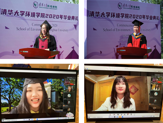 因疫情影响没能到现场的师生在线参加了毕业典礼。曲久辉院士用梁启超的一句话“纵有千古,横有八荒,前程似海,来日方长”来作为对毕业生的激励。本科生卢炜媛和研究生詹雨雨表示虽然这场突如其来的疫情打乱了同学们的学习和生活,但是大家都没有自暴自弃,而是共同克服困难,如期完成毕业论文。