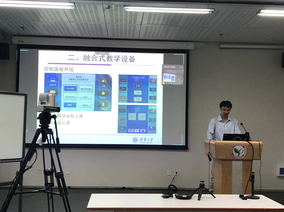 张潇源从何为融合式教学、融合式教学设备、校级和院馆教室授课演示、授课注意事项等几方面进行了细致的总结与分享,并现场演示融合式教学的关键环节,鼓励教师思考和讨论最适合自己课程的融合交互方式,达成更好的教学效果。与会教师还围绕如何促进员工快速融入融合式教学模式、教学服务保障、教学经验分享等进行了充分的交流和研讨。