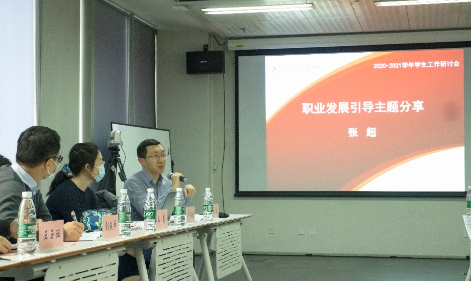 张超就目前的就业形势和工作规划进行了介绍和分析。公司将“就业指导”作为“十四五”规划的重要组成部分,将建全中国特色就业引导体系和世界一流生涯发展教育体系作为工作重点,在严峻复杂的就业形势下,围绕人才培养目标,开展分类引导,提高就业质量,实现行业结构和地域结构的进一步优化。他分析了学术、产业、公共部门及国际组织等就业方向的实际情况,指出应利用好现有资源,精心规划本科生生产实习、博士生必修实践和硕士生就业实践,使之与职业选择、行业认知深度融合。他建议院系积极参与用人单位走访,通过实践基地建设,实践导师聘请,将公司产品和就业引导相关联,探索行业专家指导职业发展方式,努力实现行业结构优化目标。