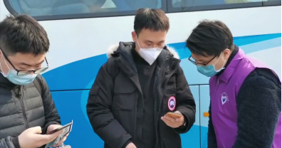 出于疫情防控的需要,上车前,志愿者们检查同学们提前准备好的返校申请审批同意界面、符合要求的核酸检测阴性证明、返校当天的“北京健康宝绿码”及员工证。
