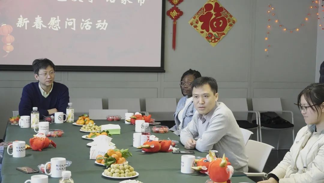老师们首先与同学们交流了留校过年的原因与在校的生活状态,了解了同学们春节期间的计划,并鼓励同学们新一年更加勇敢、积极地面对生活、学习、科研工作。