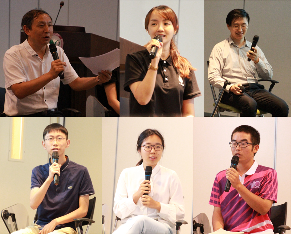 “青年人在行动”专题对话环节(从左至右、从上至下依次为:刘建国教授、黄稳理事长、柳济琛同学、徐思远同学、葛欣然同学、李家琪同学)