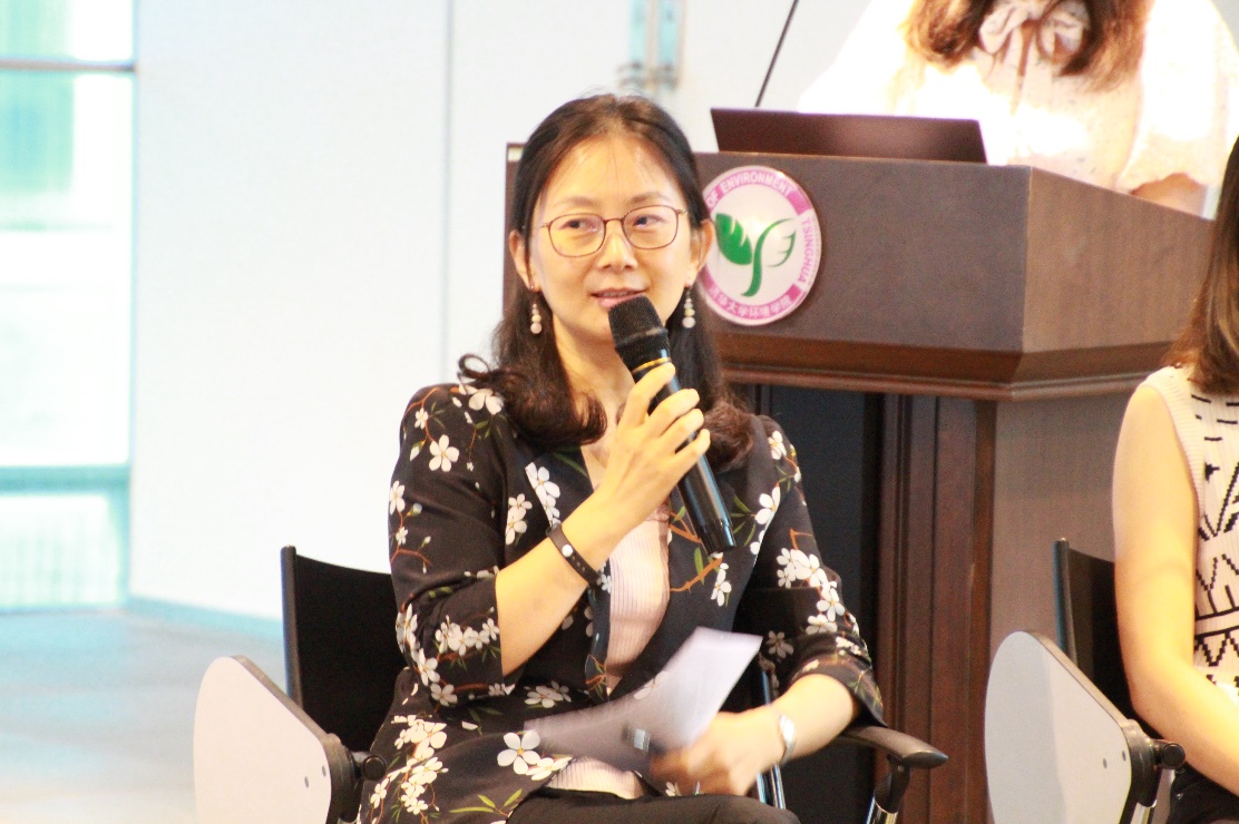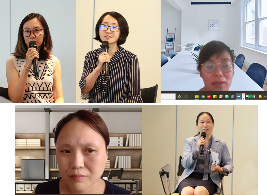 “国际与国内经验分享”专题对话环节(从左至右、从上至下依次为:王虹月女士、高思女士、刘晓洁副研究员、李冰理事长、吴桂芳总监)