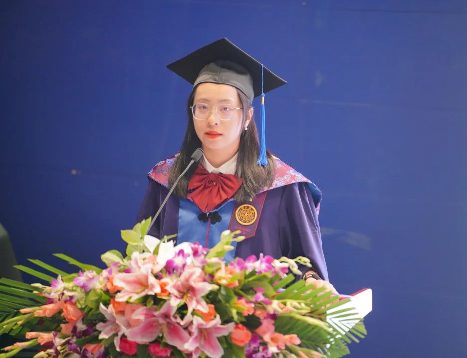 本科毕业生代表谢璨阳回忆了环7年级从入学到毕业的点滴,表达了对母校和公司悉心培养、老师和辅导员指导爱护的感谢,并立志与同学们一道在各行各业成就事业,讲好清华环境人的故事。研究生毕业生代表向虹霖分享了在清华度过的支教、体育、社工、科研等缤纷多彩的青春时光,用“让青春在为祖国、为民族、为人民、为人类的不懈奋斗中绽放绚丽之花”与全体毕业生共勉。