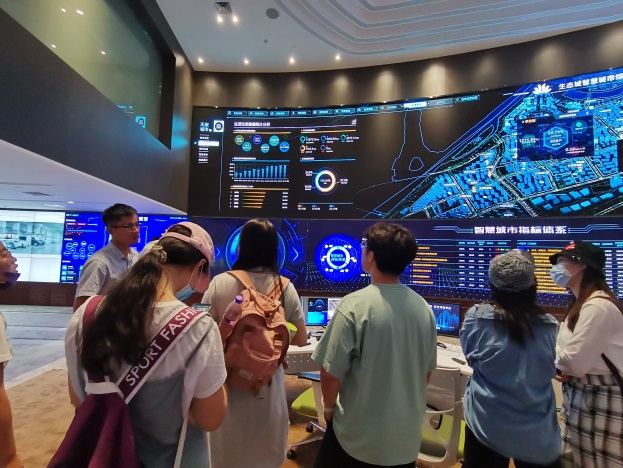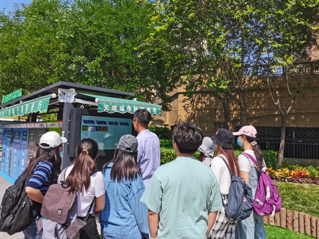 6月21日,同学们首先来到生态城环卫科技体验馆,整体了解了生态城环卫运营模式。随后,大家来到生态城垃圾分类精品示范小区——季景兰庭,参观了生态城智慧垃圾分类定时投放点和垃圾气力输送投放点,了解了垃圾分类投放、分类收集运输、居民参与情况。最后,同学们来到生态城智慧中心,参观了“无废城市”信息化管理平台。通过参观调研,同学们发现,将智慧手段融入生态文明建设,可大大提高监管效率,推进城市固体废物精细化管理进程。