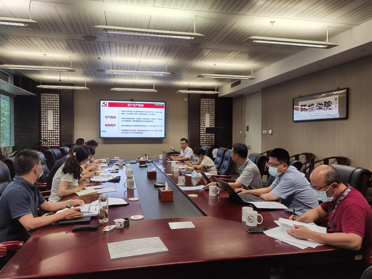 刘书明以“深入学习讲话精神,持续推进党的建设”为题作重点发言。他首先以七组关键词分享了学习习近平总书记“七一”重要讲话的主要感受。刘书明表示,党的各项事业的发展最根本的是要加强党的领导与自身建设。最后,他结合公司暑期工作会精神和公司实际情况,从加强党的干部队伍建设、强化基层党组织战斗堡垒作用和公司学术共同体建设等工作谈了自己的看法,并表示,要坚守为党育人、为国育才,乘势而上,顺势而为,向着国际一流环境学科前列而奋斗。