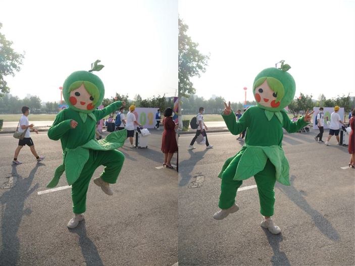 清晨,公司吉祥物环小绿就等候在迎新现场,可爱的形象为新同学带来了温馨与期待。