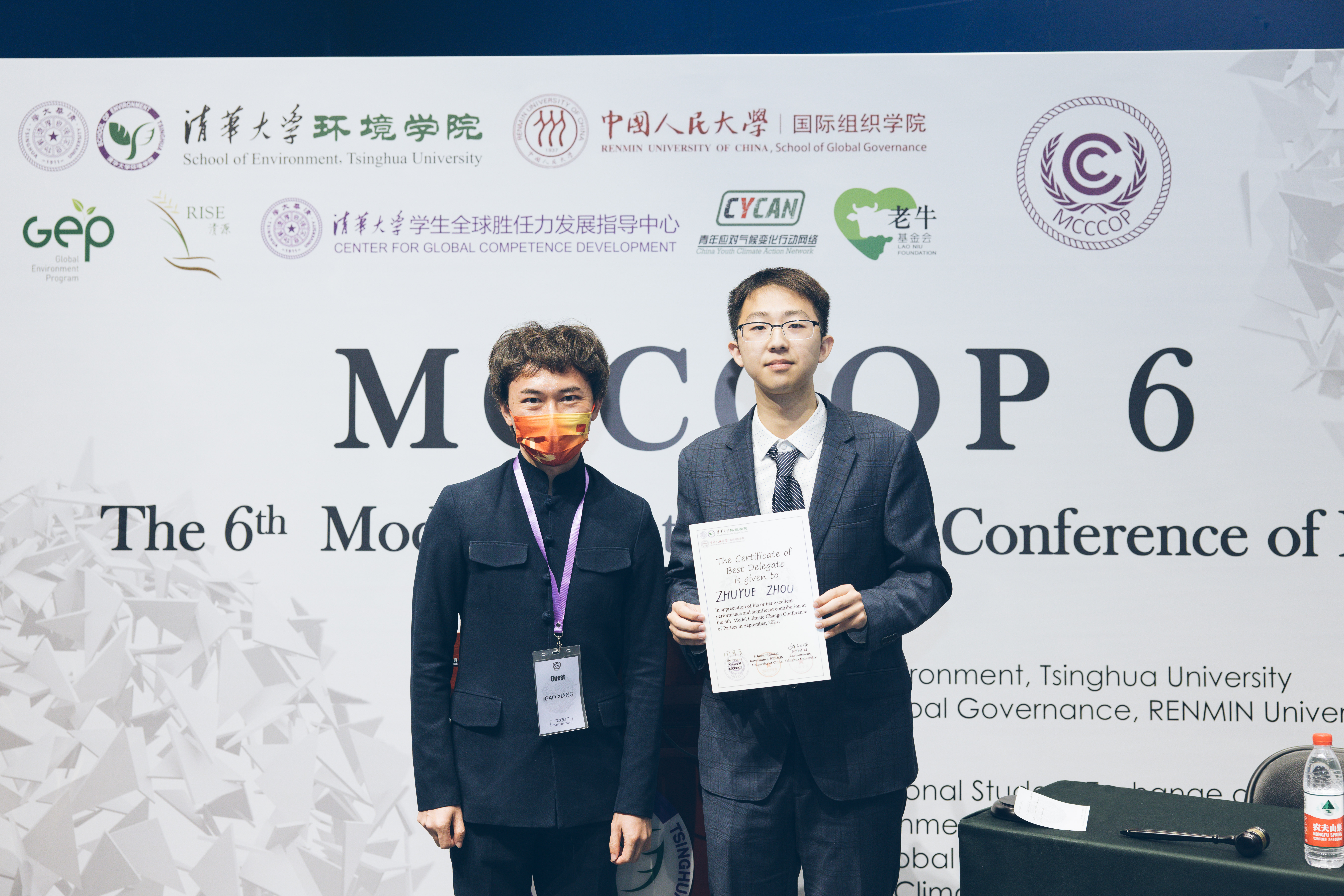 经过两天的激烈谈判,代表们将6.2条关于合作方法的指导意见草案提交MCCCOP 6全会进行审议,并形成了决议,大会圆满闭幕。经过评选,共26名同学获得大会奖项。其中,中国代表周杼樾获得最佳代表奖;美国代表王梓媛和印度代表程浩生获得优秀代表奖;法国代表和马来西亚代表获得最佳立场文件奖;中国代表和美国代表获得最佳形象奖;美国代表杨浩婷、刘小彤,中国代表赵怡霖,埃塞俄比亚代表俞朵儿,墨西哥代表徐若涵,日本代表李沛育,挪威代表王磊,埃及代表何庆铃,不丹代表刘梓宁,丹麦代表谷雨辰获得荣誉提名奖。