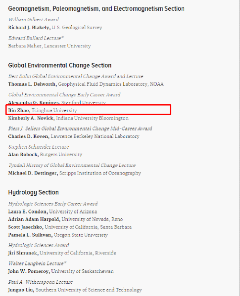 美国地球物理学会官方发布获奖名单