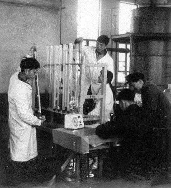 在进入实验室之前,许先生已经设计好所有的实验装置,先生家里有一张绘图桌,备有丁字尺、三角板等绘图工具,亲自绘制设备加工图纸。按照许先生制定的实验方案,在周莲溪和苏尚连老师的辅导下,实验工作按部就班地推进。实验进行中,许先生和我们一起观察、讨论。遇到难题,他还经常自己动手操作。以前大家只在课堂上见到过许先生,同学们都觉得他为人严肃、难以接近。进入课题组后,几天时间就改变了大家的想法:许先生对员工严格要求,但平易近人。