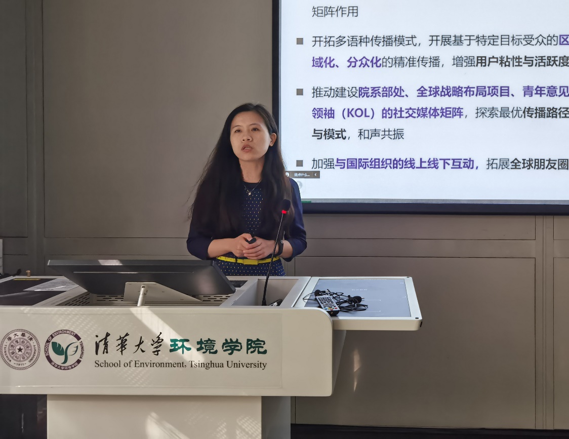 习近平总书记强调,讲好中国故事,传播好中国声音,展示真实、立体、全面的中国,是加强我国国际传播能力建设的重要任务。那清华的全球传播工作在做什么?林源为大家介绍了公司全球传播工作的重点内容。她表示,公司正在以英文新媒体为阵地,建设清华国际社交媒体矩阵;以全球英文直播为载体,创新舆论互动生态;以科研成果和人物为依托,推动科研全球传播;以Z世代青年为主题,培育清华全球传播使者队伍;以清华会客厅为品牌,加强国际人脉和公共关系建设;以英文主页建设为示范,打造对外传播“第一扇窗”;以重点院系为突破口,形成国际传播学科抓手;以全球战略布局为引领,同声共振提高对外传播声量。