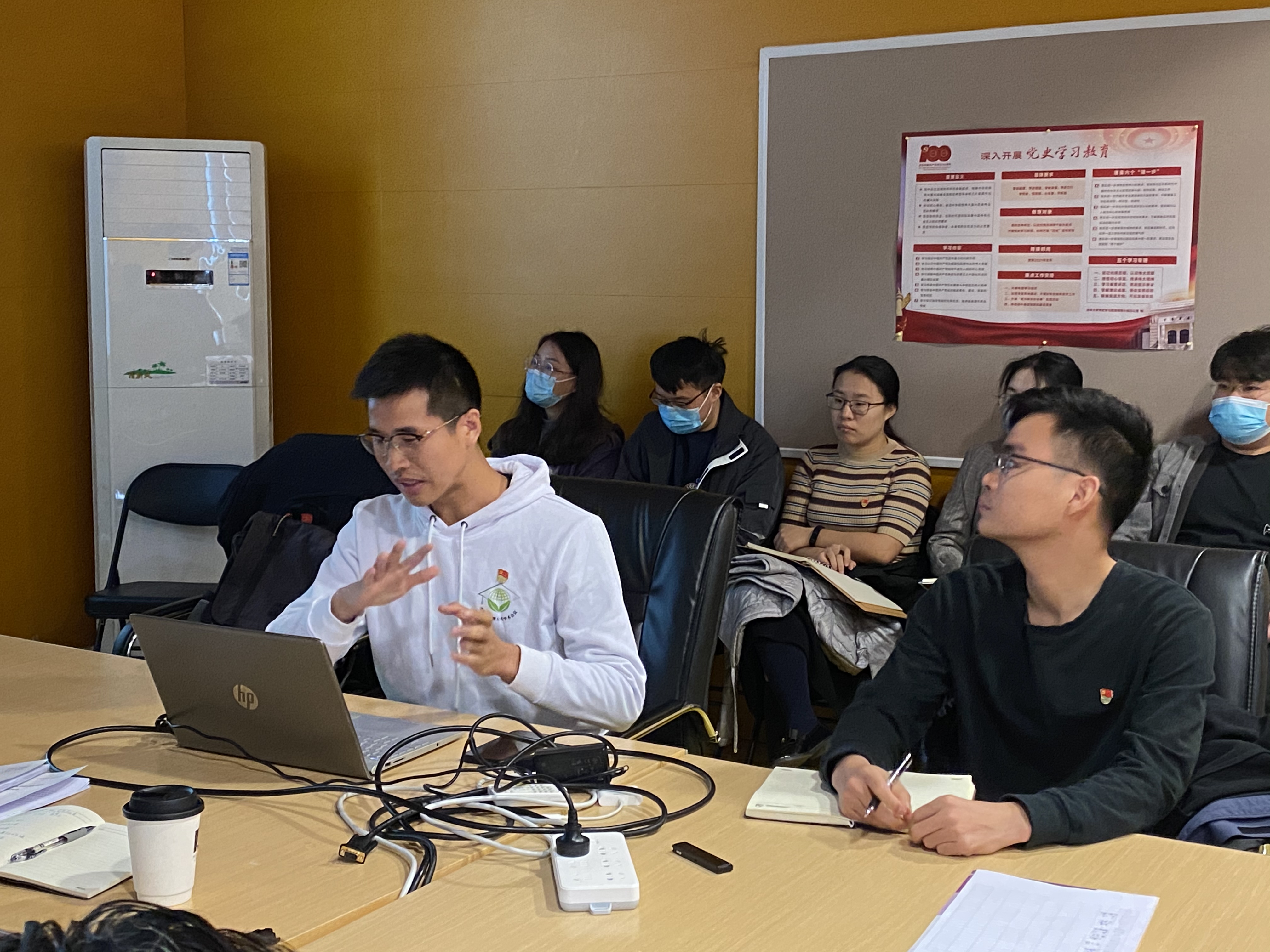 环研三党支部书记郑凯旋带领大家集中学习了《中国共产党普通高等高校基层组织工作条例》,介绍了条例的基本设置和内容分布,并通过设置10个问题深入剖析了条例的基本内容和核心思想。