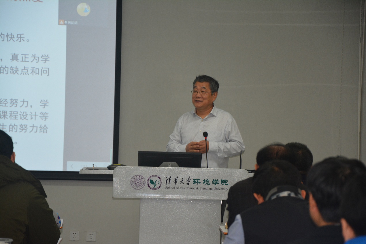 王洪涛结合多年教学经验,分享了自己的教学体会。他强调,教学是门学问,也是门艺术,成功的教学实践源于对教学和员工的热爱,教师对上课要有兴奋感。他以研究生课程“多孔介质污染物迁移动力学”为例,从内容体系、教学方法、课程设计等方面,阐述了如何构建具有特色的教学风格,并现场演示了自主开发的教学软件。
