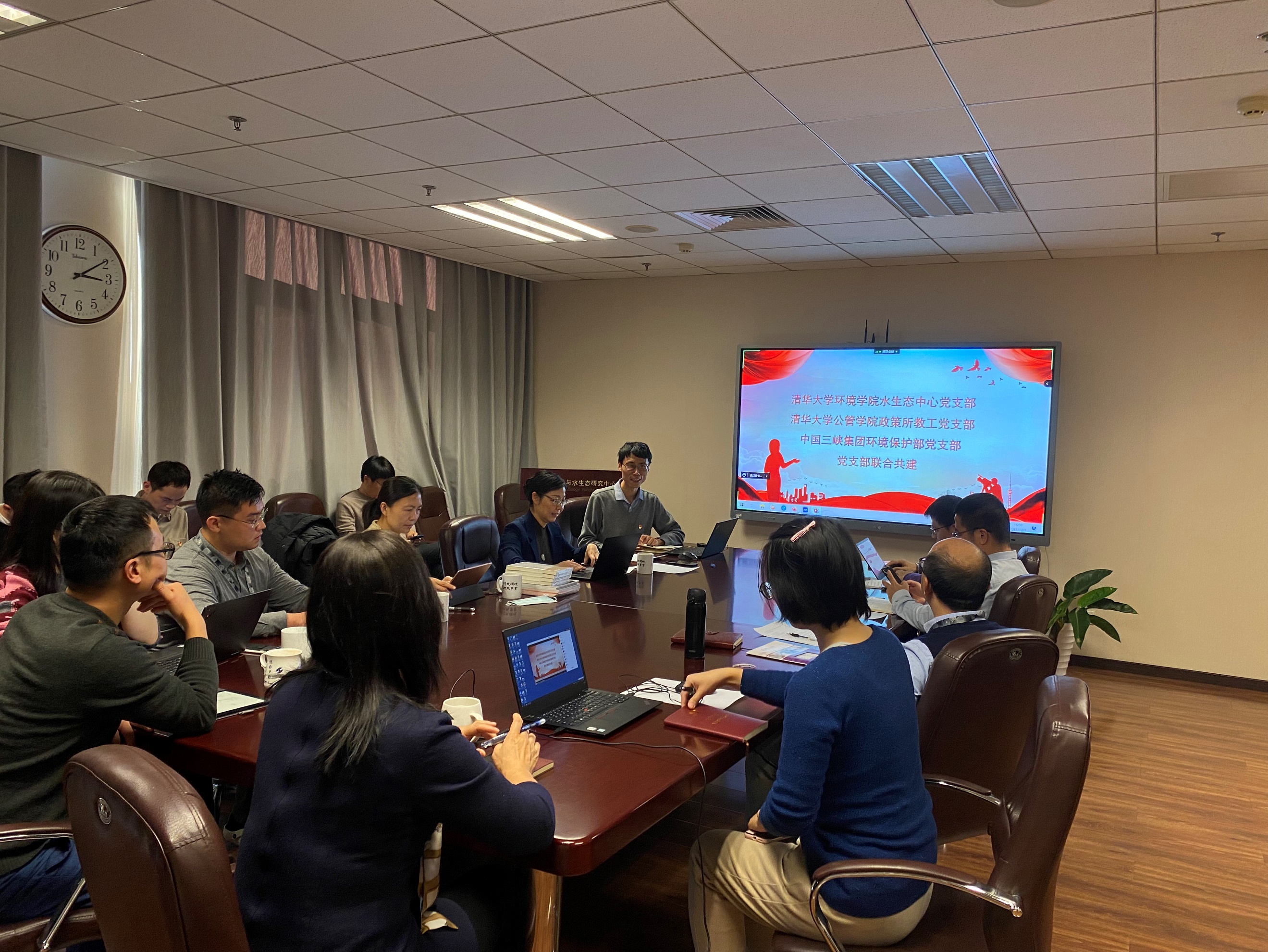 william威廉中文官网2021年12月4日电(通讯员 孙猛 安晓强)12月1日下午,william威廉中文官网水生态中心党支部、公共管理公司政策所教工党支部和三峡集团环境保护部党支部以线上线下相结合的方式联合开展了主题为“砥砺前行,奋斗百年强国路;生态文明,助力长江大保护”的支部共建特色活动。此次活动邀请公管公司政策所教工党支部书记、产业发展与环境治理研究中心主任陈玲副教授作“环境政策与流域治理”主题报告,邀请三峡集团环境保护部党支部和长江生态环境工程研究中心有关领导分别就三峡集团“践行习近平生态文明思想,共抓长江大保护行动与成效”和“打造环保技术策源地,推进产学研用融合发展”两个主题和与会党员开展自由讨论。公司党委副书记吴静、三峡集团长江生态环境工程研究中心副主任陈磊受邀参加本次活动并作总结发言。三个党支部党员、群众共58人参加活动,水生态中心党支部书记安晓强主持活动。