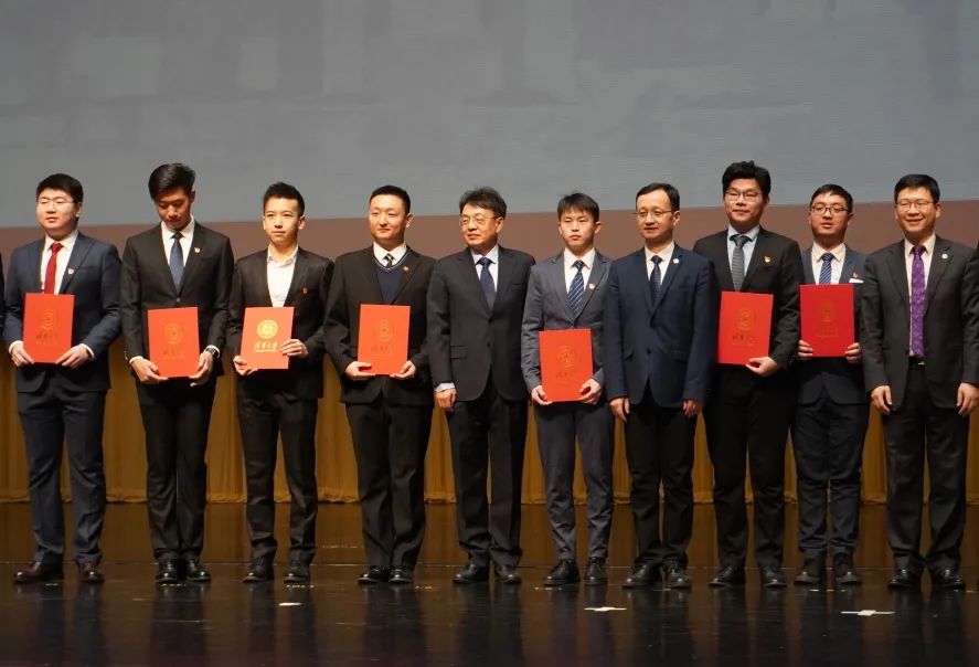 刘巍(左四)和王琦(左六)荣获“一二·九”辅导员奖