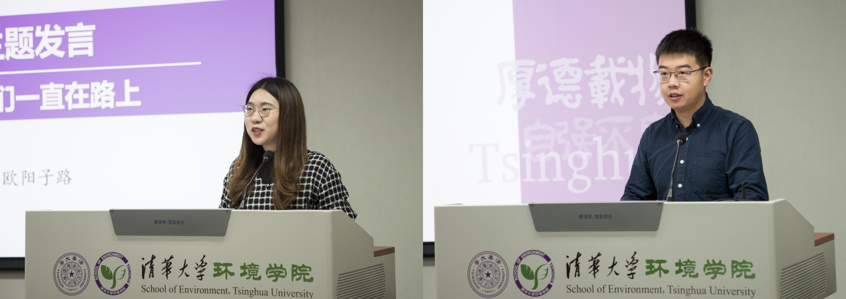 欧阳子路(左)、宋泽群(右)分别介绍公司本科生和研究生实践情况
