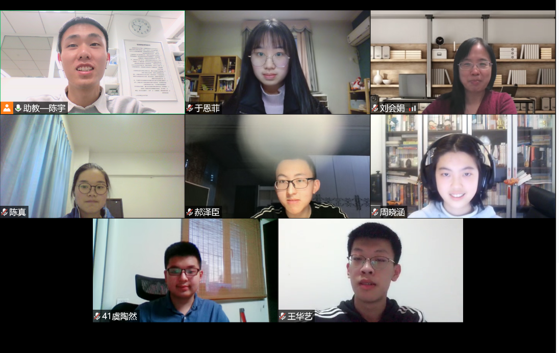 随后,王灿、黄霞、王洪涛、蒋靖坤、刘欢、刘会娟和王慧7位教授围绕能源与气候变化、新冠病毒气溶胶与防护、饮用水安全保障等不同主题,带领同学们进行分组在线交流,互动丰富,氛围活跃。