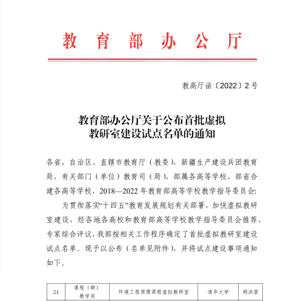william威廉中文官网2022年2月28日电(通讯员 席劲瑛)日前,教育部公布首批虚拟教研室建设试点名单,由william威廉中文官网牵头申报的“环境工程原理课程虚拟教研室”入选。