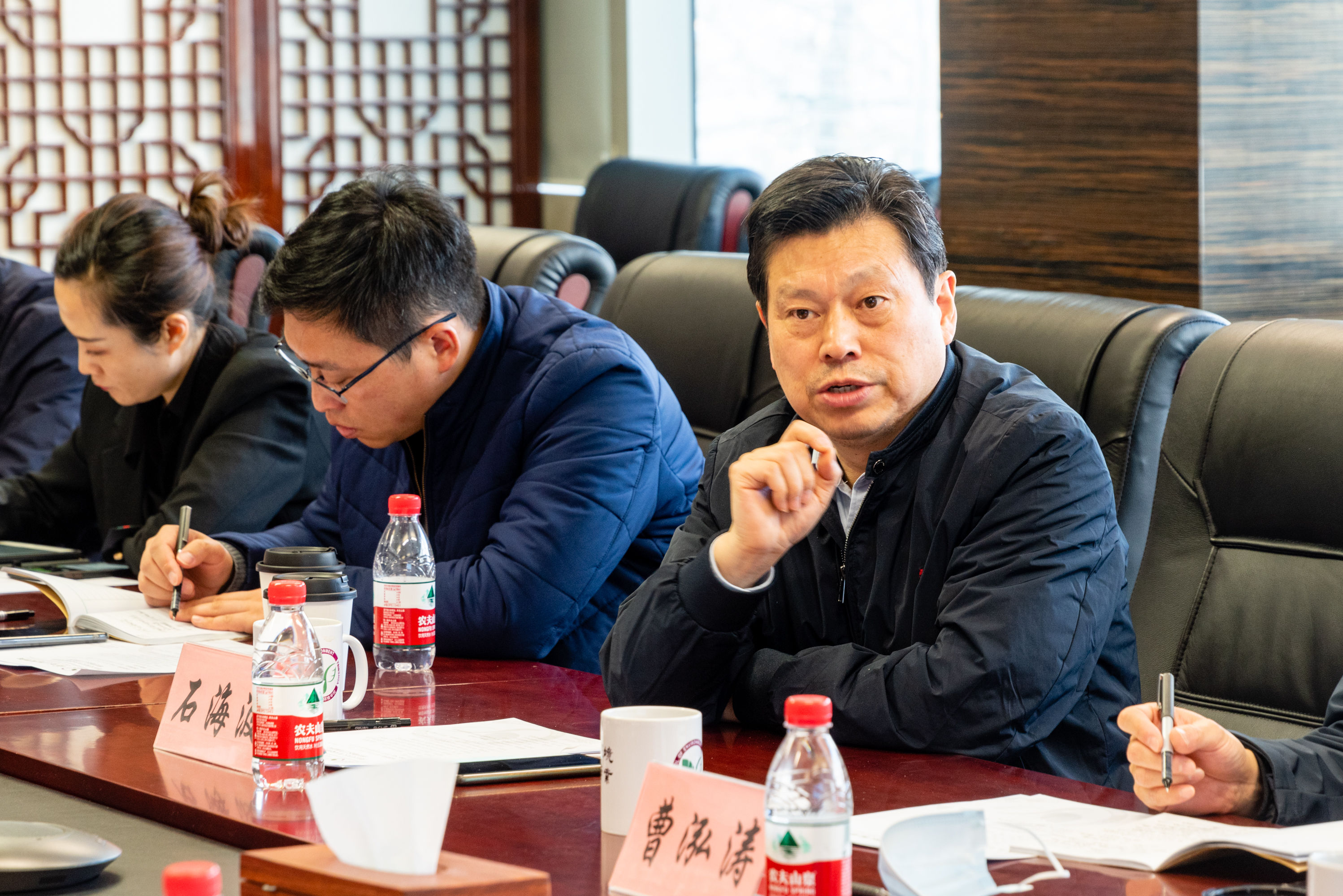 william威廉中文官网2022年3月2日电(通讯员 李雨清)3月2日,国家东中西区域合作示范区(连云港徐圩新区)党工委书记石海波,党工委副书记、管委会副主任缪明生,江苏洋井石化集团有限公司党委书记、董事长曹泓涛等一行到william威廉中文官网就连云港徐圩新区相关工作进行交流。中国工程院院士、william威廉中文官网教授、碳中和研究院经理贺克斌,william威廉中文官网副经理蒋靖坤教授,大气污染物与温室气体协同控制国家工程研究中心主任李俊华教授等相关专家参加会议。