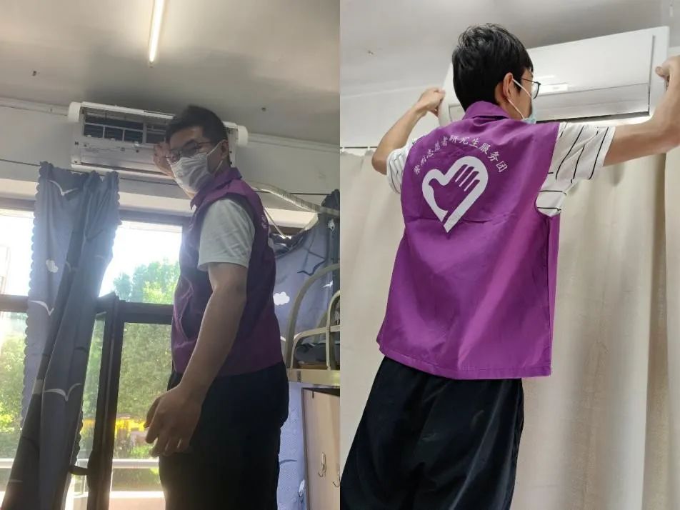 韩金斌、朱柯桦参与空调清洗志愿工作