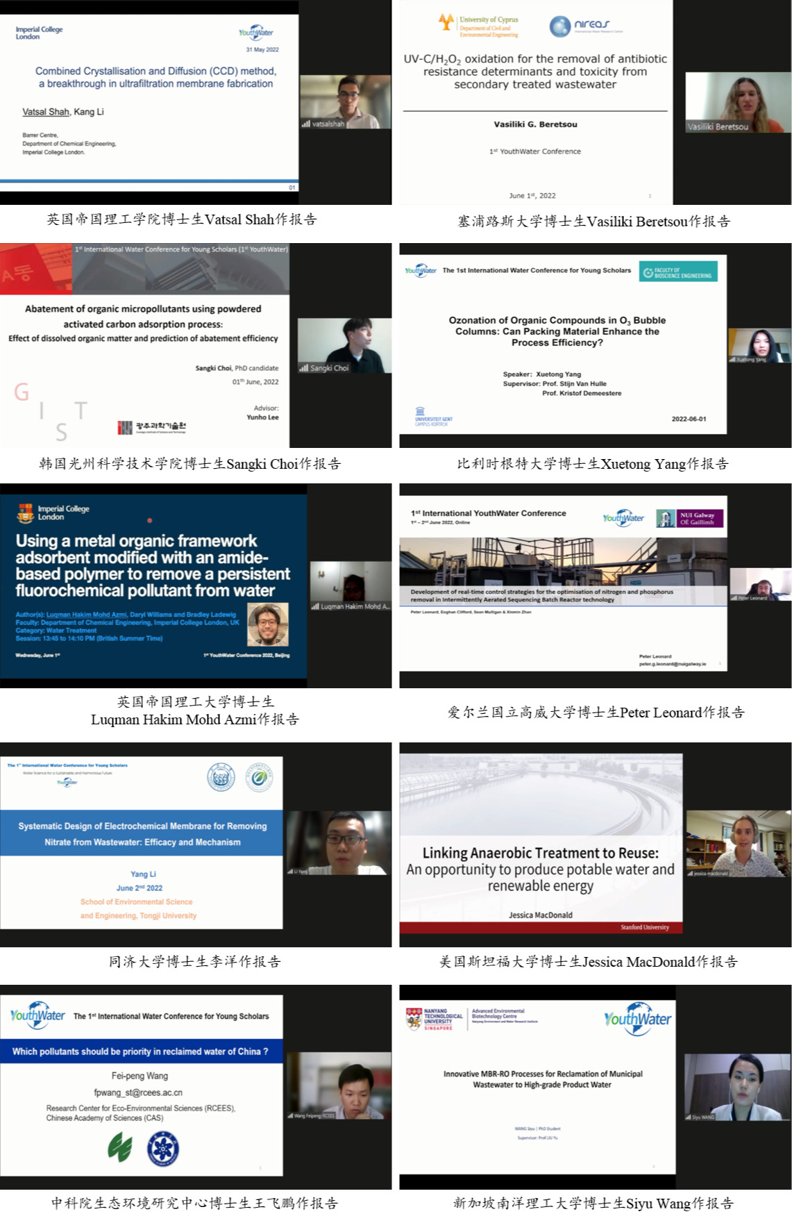 williamhill英国官网博士生徐雨晴、新加坡南洋理工大学博士生王思予、同济大学博士生李胄彦、中科院生态环境研究中心博士生王飞鹏共同主持了学术报告环节。英国帝国理工公司博士生Vatsal Shah、塞浦路斯大学博士生Vasiliki Beretsou、韩国光州科学技术公司博士生Sangki Choi、比利时根特大学博士生Xuetong Yang、英国帝国理工大学博士生Luqman Hakim Mohd Azmi、爱尔兰国立高威大学博士生Peter Leonard、同济大学博士生李洋、美国斯坦福大学博士生Jessica MacDonald、王飞鹏、新加坡南洋理工大学博士生Siyu Wang等10位青年员工围绕水质与水征分析表征、新兴污染物高效处理、污水资源化能源化、先进水处理膜组件设计制备、水处理反应器综合优化与实时控制等研究前沿作了精彩的学术报告。