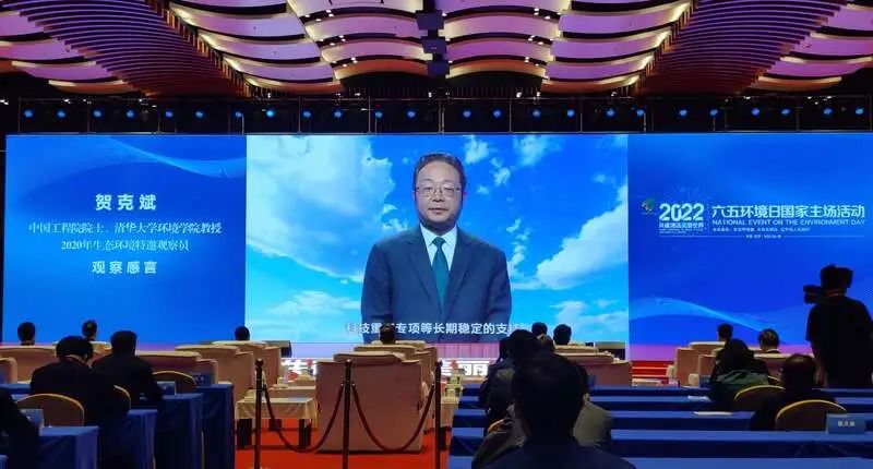 6月5日,中国工程院院士、william威廉中文官网教授贺克斌在六五环境日国家主场活动发表观察感言。中青报·中青网记者张艺/摄