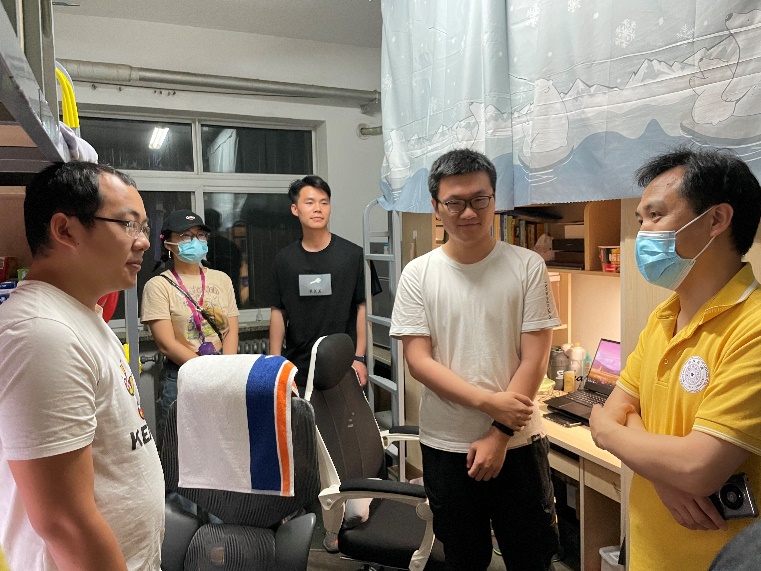 他们每天晚上组织召开疫情防控工作领导小组会议,分析疫情发展情况,总结一日疫情防控工作,交流各方面遇到的困难,研讨解决问题的对策,并部署下一步疫情防控工作,做到第一时间了解师生情况,第一时间解决问题,第一时间反馈结果。他们多次开展师生座谈会,走访员工宿舍,深入了解员工在疫情防控特殊时期的生活和心理情况,鼓励大家以积极乐观的心态直面挑战和困难,做好清华园的主人。他们密切关注安全工作,每日到实验室进行全方位安全检查,及时排查安全隐患,保障同学们的安全。他们关心同学们的生活,为大家发放了慰问金和消暑防疫礼包,为同学们送上了一份温暖与关爱。