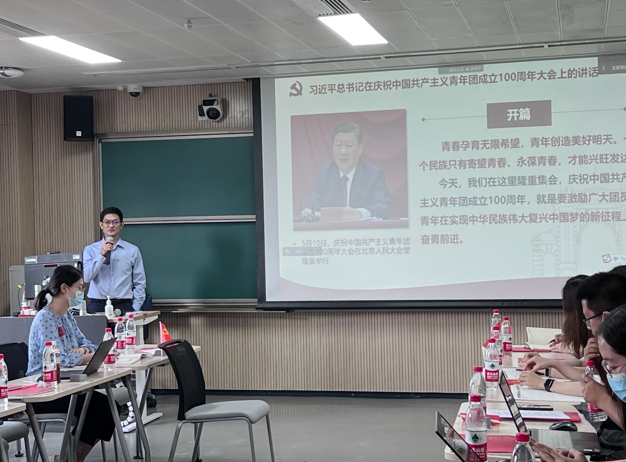 随后,系统政策所联合党支部书记温宗国带领师生学习了习近平总书记在庆祝中国共产主义青年团成立100周年大会上的重要讲话精神,围绕共青团的初心使命、发展历程、新时代给共青团员提出的要求等方面展开介绍,强调了青年的命运始终与时代紧密相连的特征,鼓励青年人树立敢闯敢干、引领风尚的精神风貌,积极做党和国家的“先锋分子”。