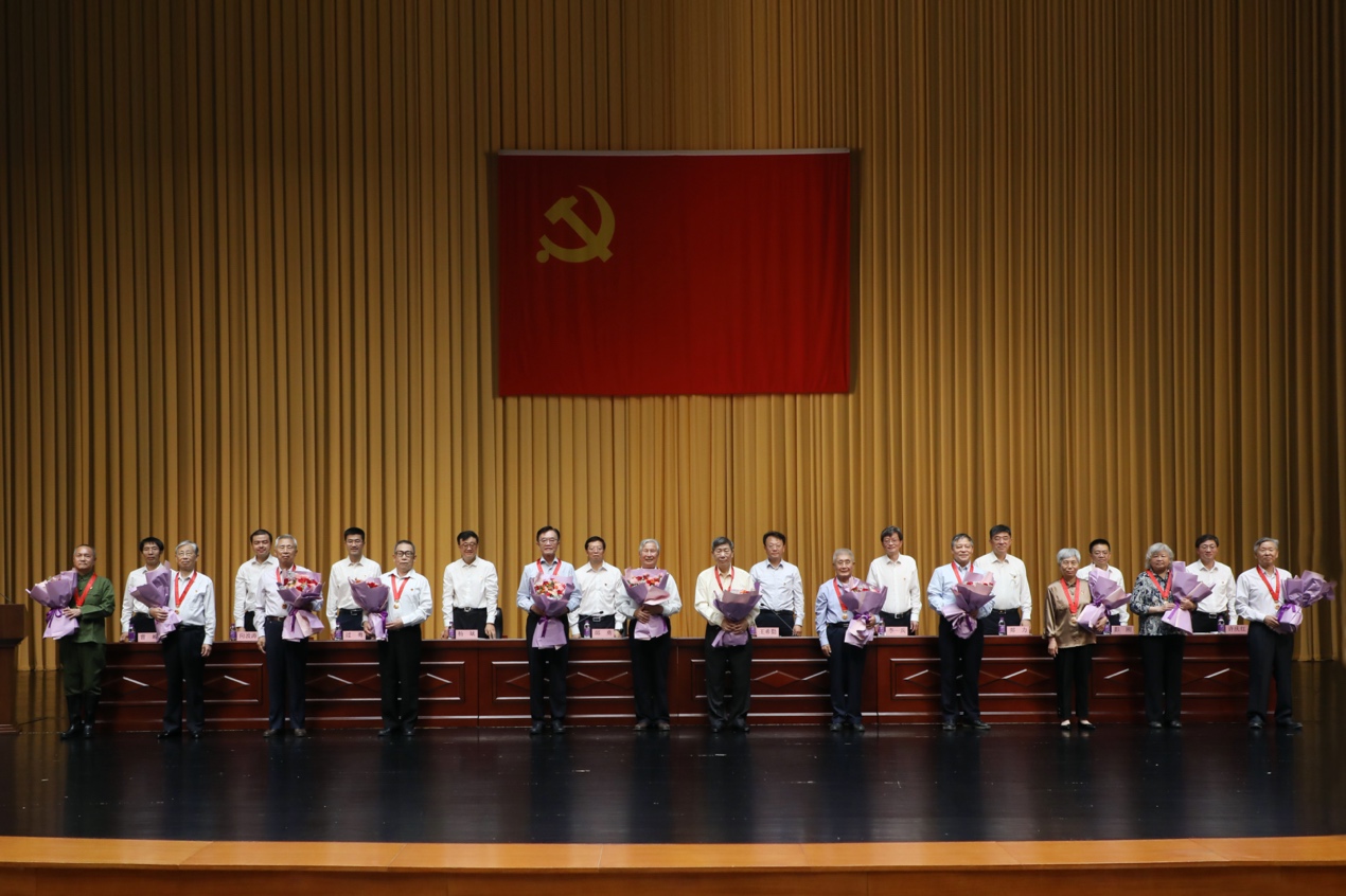 校领导为获得“光荣在党50年”纪念章的党员代表颁发纪念章
