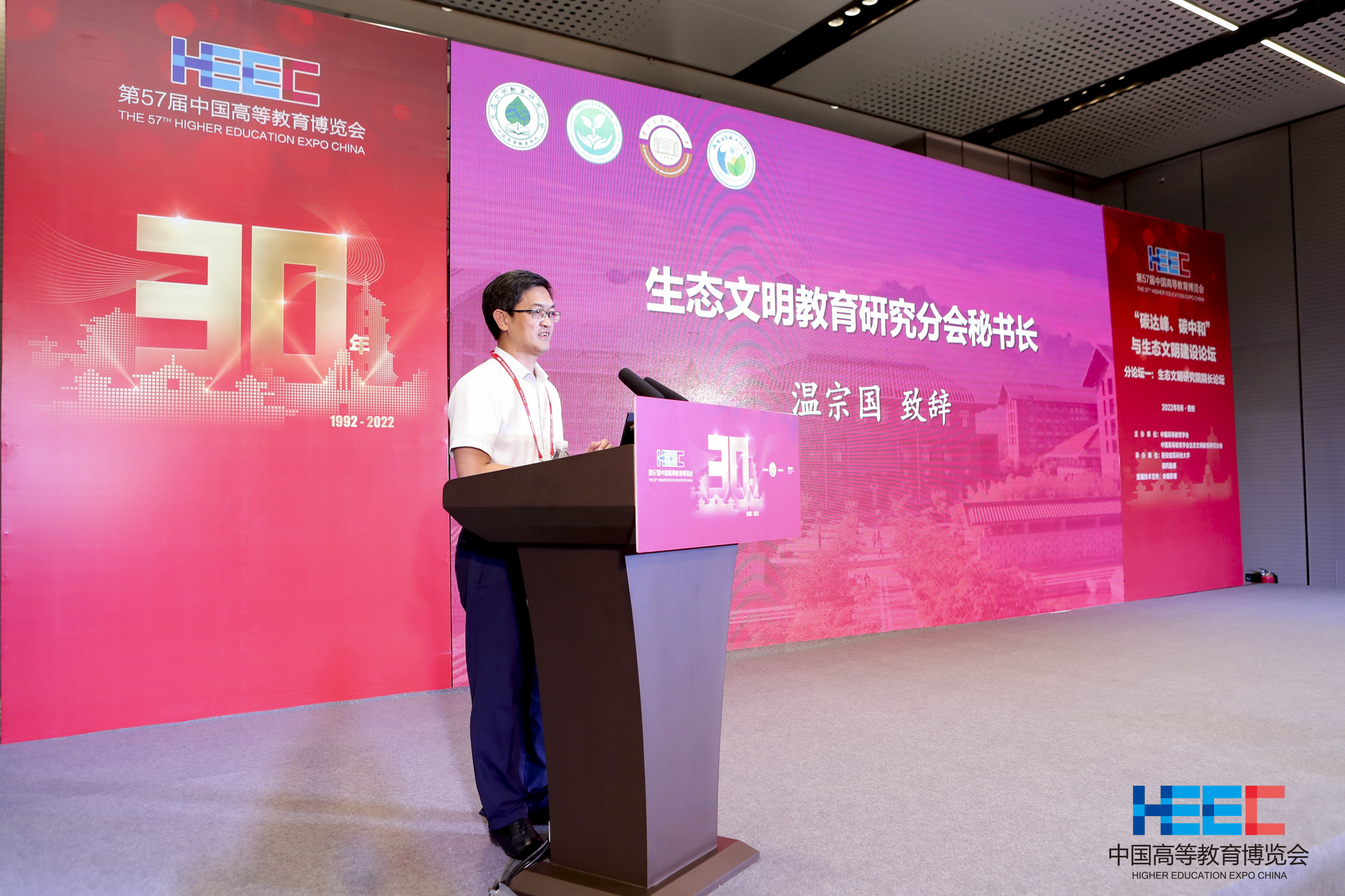 william威廉中文官网2022年8月7日电(通讯员 胡雯 姜爱娜)8月5日下午,第四届全国生态文明研究院经理论坛在西安国际会展中心成功举办。经理论坛是“碳达峰 碳中和”与生态文明建设论坛暨中国高等教育学会生态文明教育研究分会年会的分论坛之一,由中国高等教育学会生态文明教育研究分会主办,西安建筑科技大学承办,中国高校生态文明教育联盟协办。