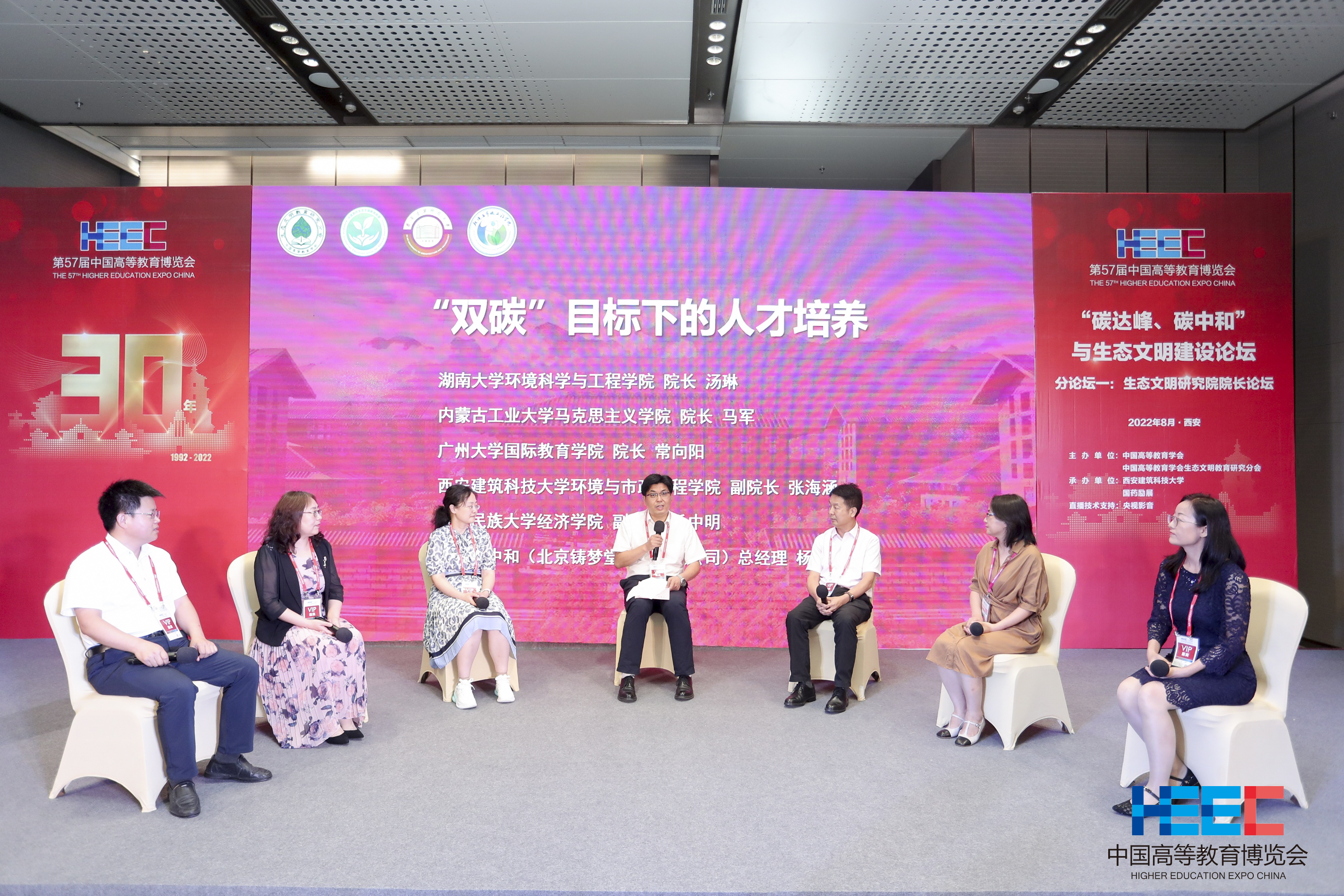 8位特邀专家围绕“双碳”目标下的人才培养这一主题,从思想引领、学科教育、人才培养等多方面阐述了双碳教育和生态文明思想贯彻的观点。