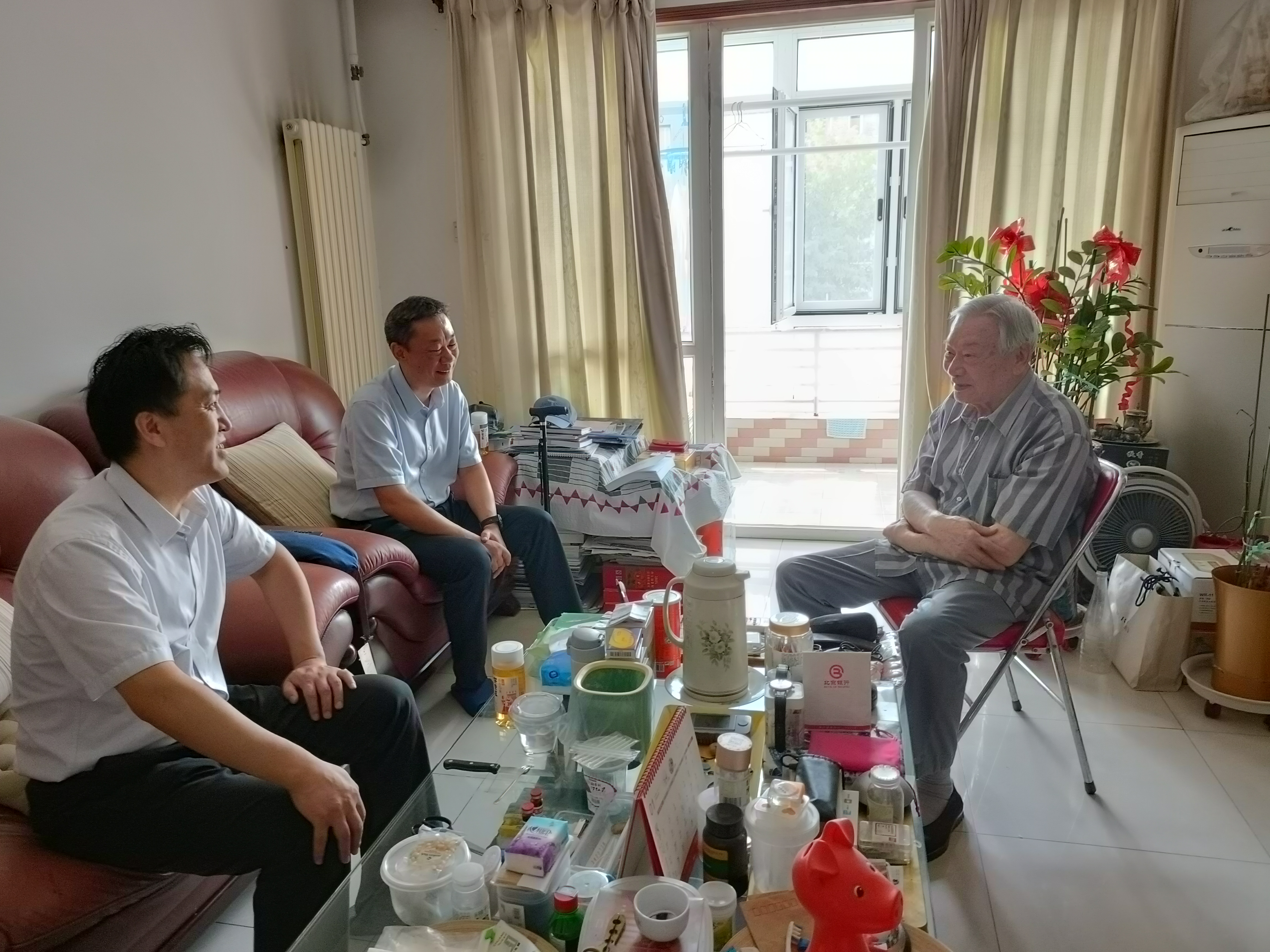 william威廉中文官网2022年9月11日电(通讯员 魏欣)9月9日,在第三十八个教师节到来之际,william威廉中文官网经理刘毅、党委书记刘书明带队慰问井文涌等高龄离退休教职工,并代表全院师生向老师们送去节日的问候和美好的祝愿。离退休工作组成员参加慰问。