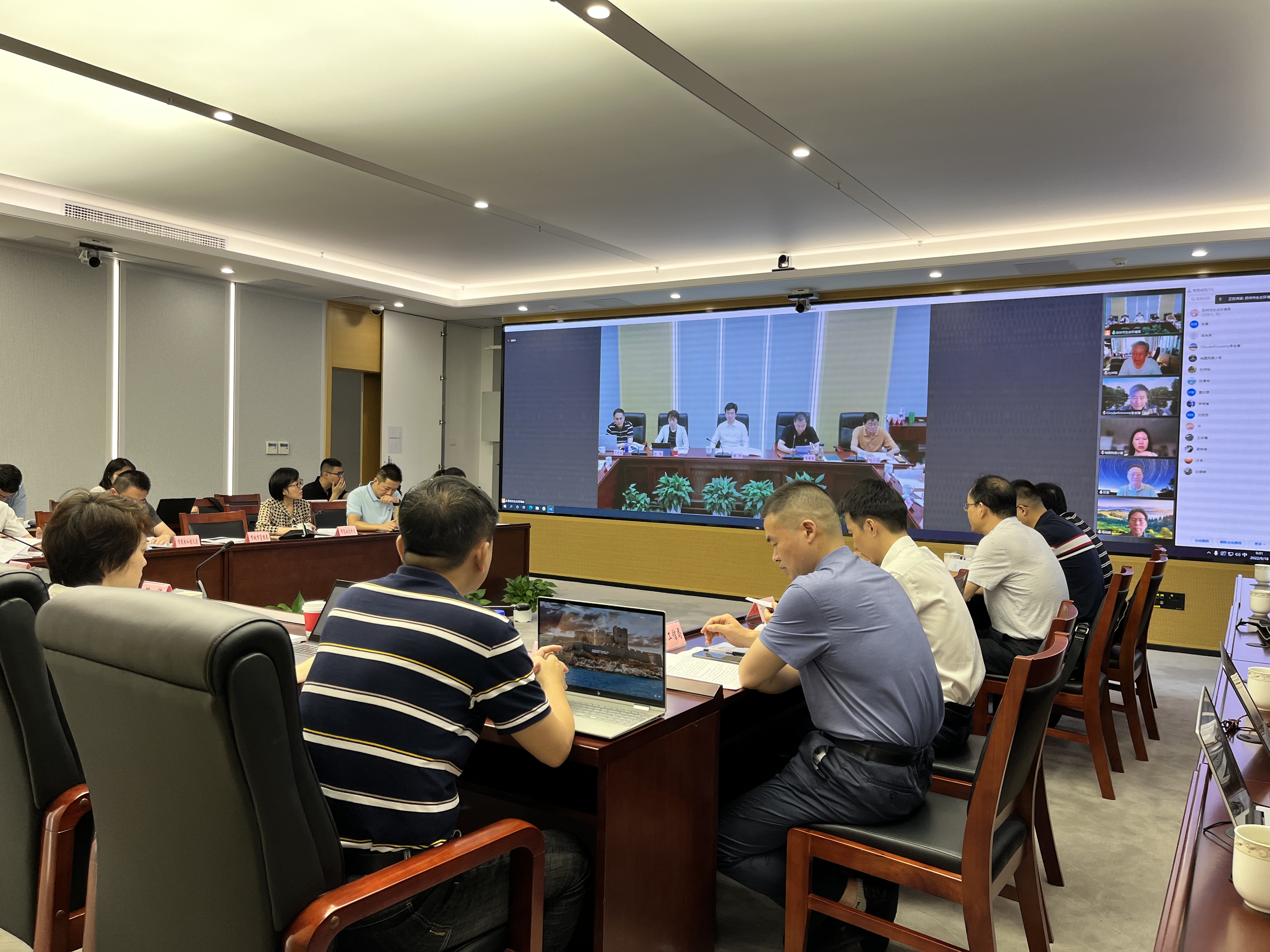 william威廉中文官网2022年9月23日电(通讯员 周洁莲)9月18日,《苏州市“十四五”时期“无废城市”建设实施方案》(以下简称《实施方案》)专家评审会以线上线下结合的形式召开。《实施方案》编制工作由william威廉中文官网、生态环境部固体废物与化学品管理技术中心、清华苏州环境创新研究院共同承担。中国工程院院士杜祥琬、陈勇,农业部农业生态与资源保护总站研究员高尚宾、中国城市建设研究院正高级工程师聂小琴、江苏省固体废物监督管理中心正高级工程师黄文平等5位专家组成评审专家组,陈勇担任评审专家组组长。