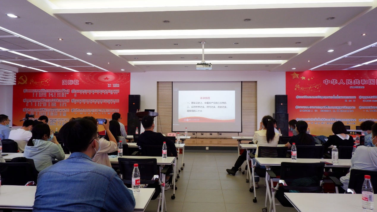 回望百年党史的三次危机,如何总结中国共产党化危为机的智慧?应对世界之变、时代之变、历史之变的新时代中,怎样迎接党的二十大?williamhill英国官网博士生讲师团讲师牟雨璇为大家作“领悟百年党史智慧 喜迎二十大召开”主题宣讲。她详细介绍了中国共产党在面临1927年大革命失败、1933年第五次反围剿失败、1937年抗日战争爆发三次危机时的处理情况,总结了中国共产党在三次危机处理中的智慧,并倡议广大青年继承和发扬先辈精神,勇担民族复兴重任,争做时代新人。