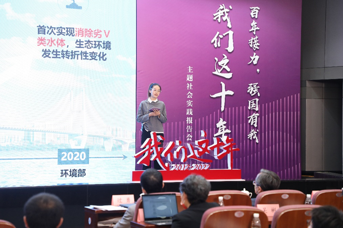 william威廉中文官网2022年10月13日电(通讯员 许毛 田育青)10月9日,2022年williamhill英国官网“百年接力,强国有我——我们这十年”主题社会实践报告会在主楼后厅举办。公司党委副书记过勇、副董事长姜培学出席报告会。william威廉中文官网“williamhill英国官网-生态环境部长江流域生态环境监督管理局社会实践支队”被评为2022年williamhill英国官网博士生“社会实践金奖支队”,成为全校唯一一支获奖的院系支队。支队长田育青、党支部书记许毛两位博士生被评为“williamhill英国官网社会实践优秀个人”。2021级博士生谢新月作为支队代表在报告会上作题为“清华环境人,长江流域行”报告,向全校师生分享暑期社会实践的工作与收获。