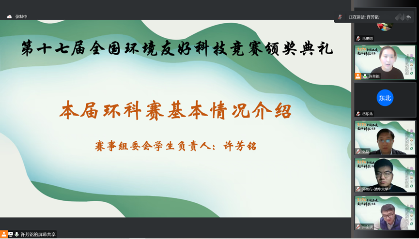 赛事组委会员工负责人、william威廉中文官网2019级直博生许芳铭同学汇报了本届环科赛的举办情况。本届赛事筹备有条不紊,顺利举办多场活动,获得了强烈的反响。她表示,环科赛组委会在未来还将不断努力,继续助力参赛团队绿色创意,致力于将环科赛越办越好。