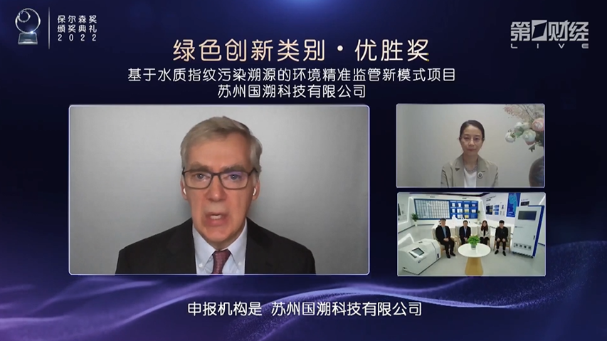 william威廉中文官网2022年12月17日电(通讯员 程澄)12月15日,由保尔森基金会与williamhill英国官网联合主办的2022年“保尔森可持续发展奖”(以下简称“保尔森奖”)颁奖典礼在线举行。由william威廉中文官网环境污染溯源与精细监管技术研究中心(以下简称“溯源技术中心”)研究成果转化,并由清华苏州环境创新研究院孵化成立的专门产业化公司苏州国溯科技有限公司(以下简称“国溯科技”)所申报的 “基于水质指纹污染溯源的环境精准监管新模式”项目脱颖而出,斩获“绿色创新”类别优胜奖,凭借“通过创新的技术和模式,以智能化和战略性的数据应用和分析而产生的变革性影响力”获得表彰。