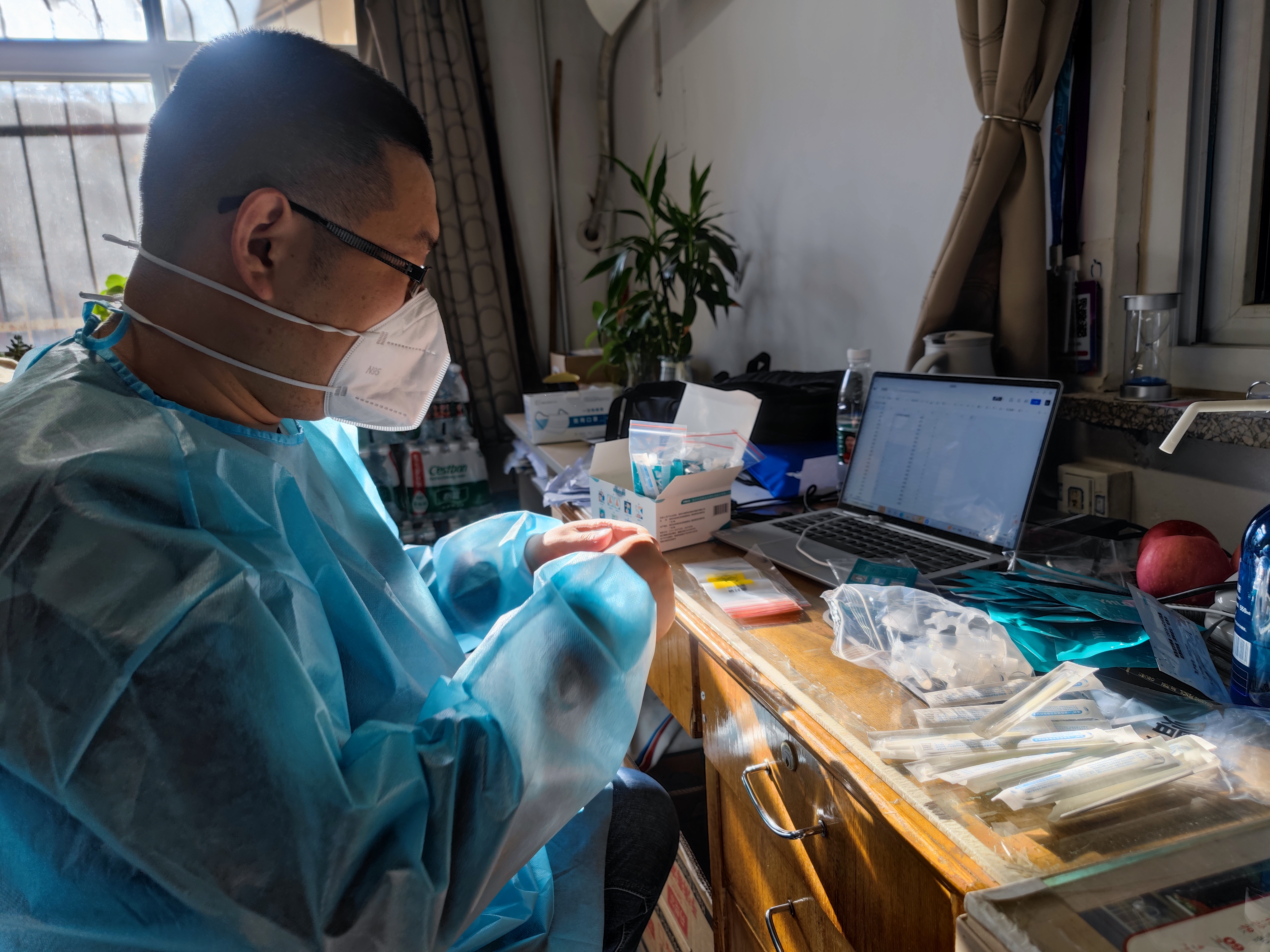 张浩在整理分装抗原检测试剂