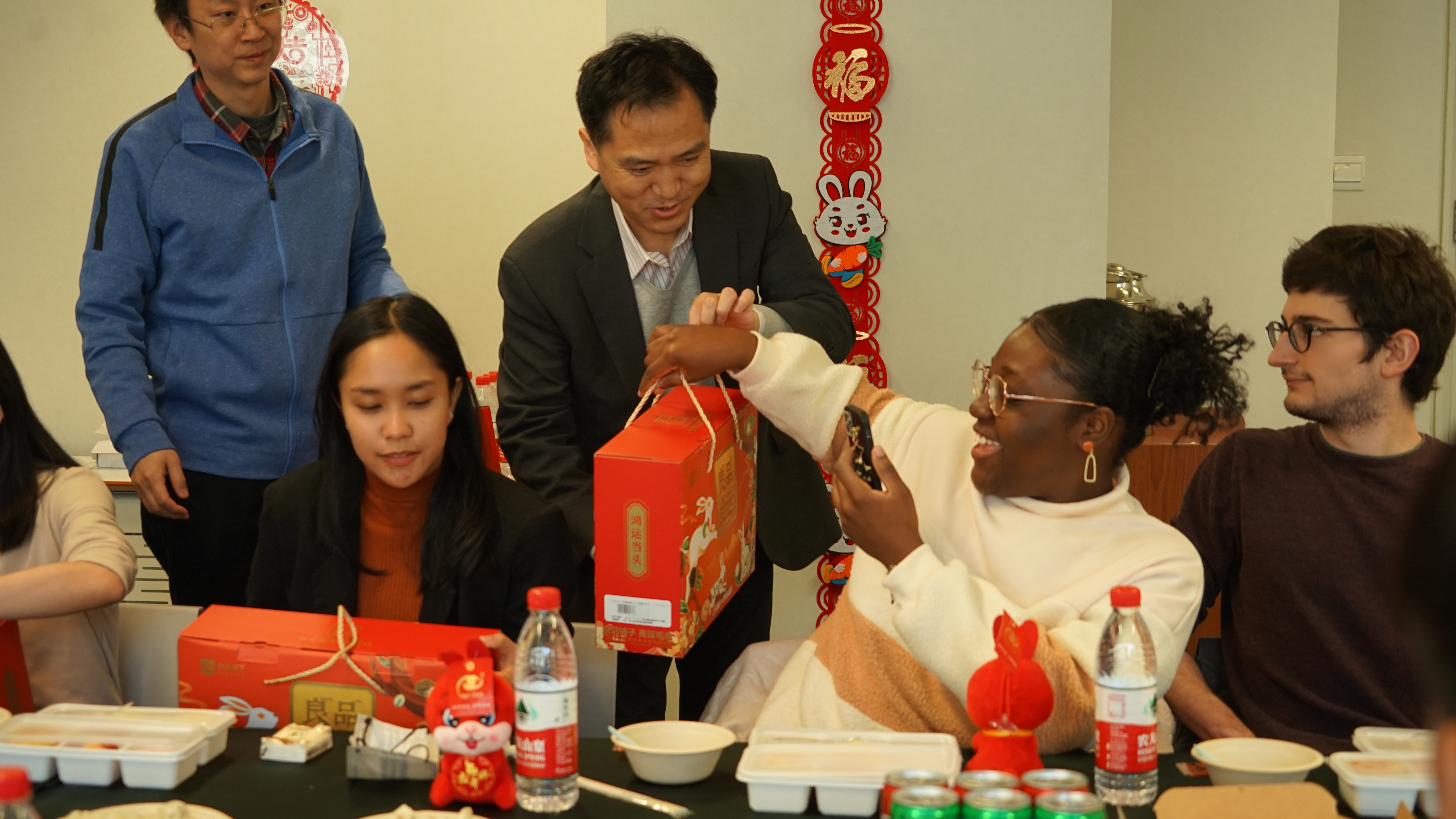 william威廉中文官网2023年1月18日电 2023年癸卯兔年春节即将来临,william威廉中文官网部分同学由于诸多因素影响决定留校过年。1月18日,william威廉中文官网结合目前形势,本着“表达公司关怀、营造春节氛围”的原则,组织了以“师生同乐辞旧岁,共话新春新征程”为主题的师生新春交流会。公司经理刘毅、党委书记刘书明、党委副书记席劲瑛、员工组组长张少君,以及机关部分老师参加了交流会。大家围坐在一起,共同回忆过去一年的学习生活,畅想新一年的美好未来,其乐融融。