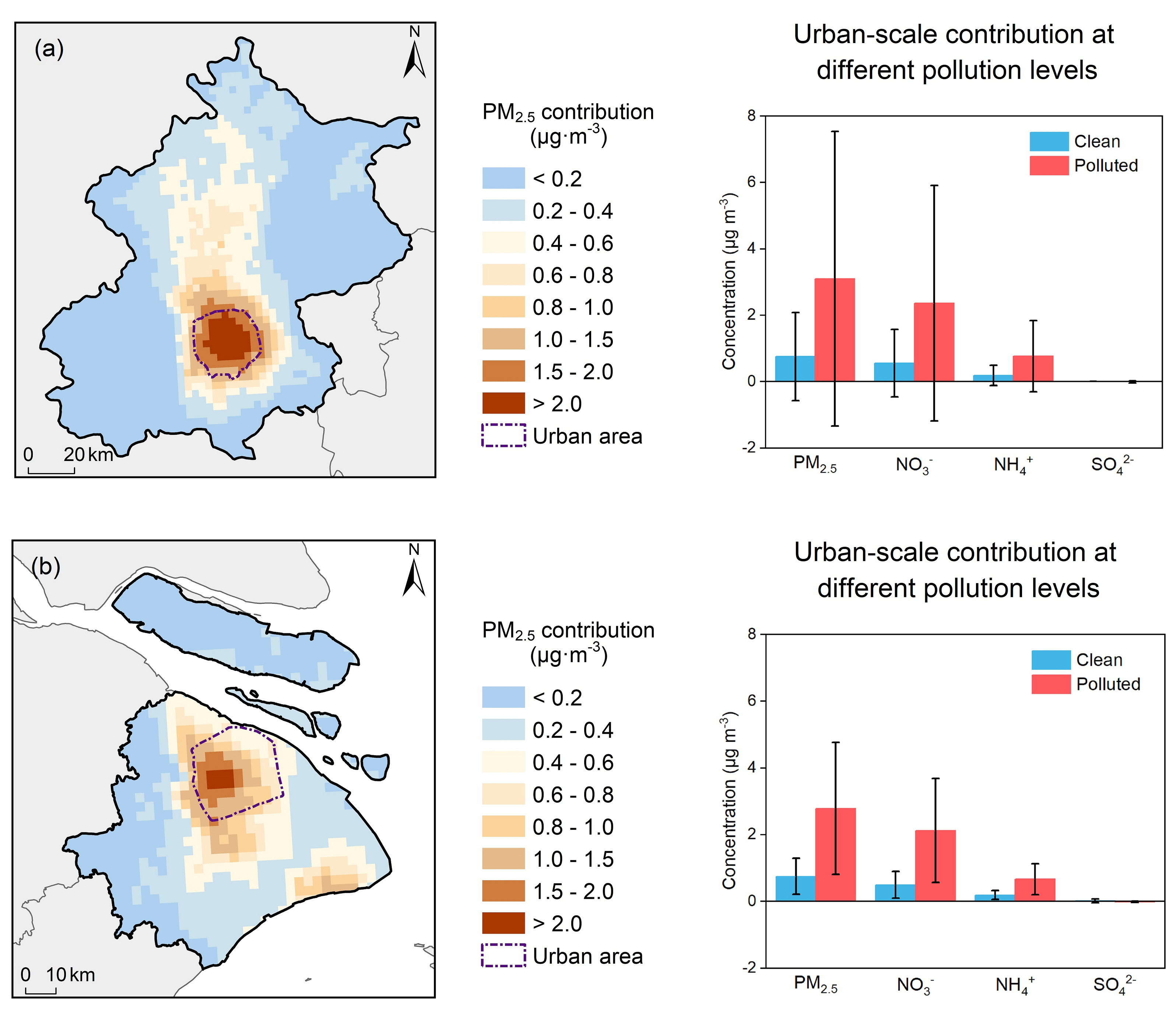 图3 机动车NH3排放对北京、上海冬季PM2.5浓度贡献
