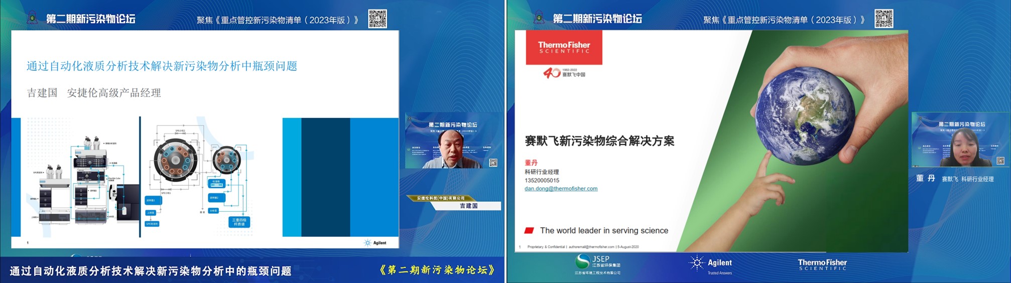 会上,行业领域相关专家安捷伦科技(中国)有限公司高级产品经理吉建国、赛默飞世尔科技(中国)有限公司科研行业经理董丹就新污染物分析中的瓶颈问题以及综合解决方案作了介绍。
