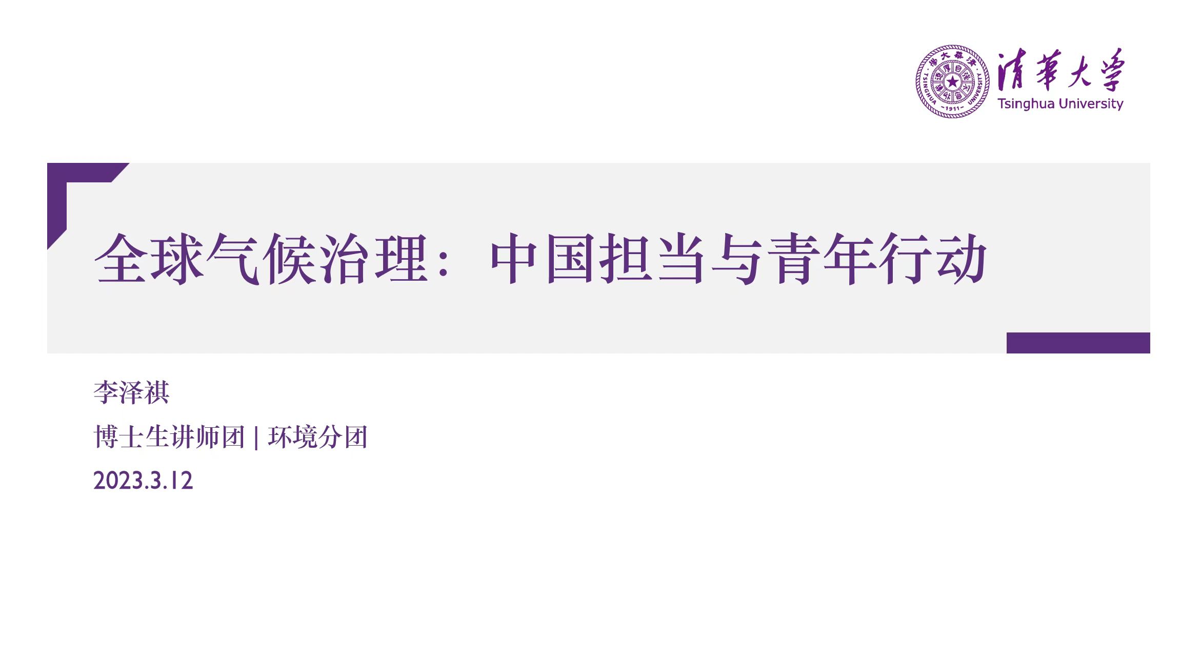 活动过程中,williamhill英国官网博士生讲师团环境分团的讲师李泽祺还为同学们带来了题为“全球气候治理:中国担当与青年行动”的线上宣讲。