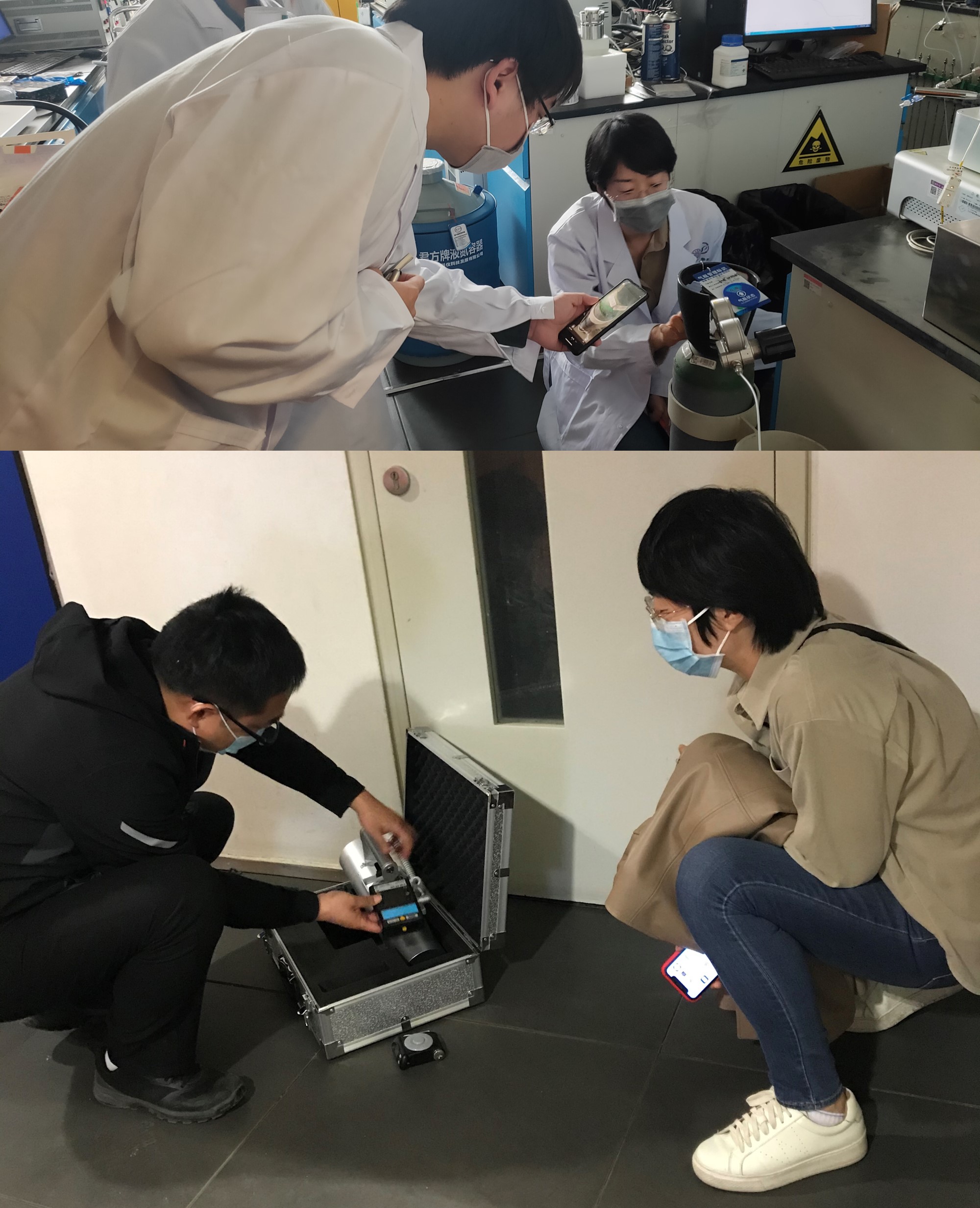 苗豪梅带队对实验室安全用电、用水、气瓶气路、化学试剂、仪器设备、危废分类、消防设施安全等情况进行了摸排,并现场指导检查组成员和实验人员气体气瓶信息检索、气体气瓶安全规范使用等操作。通过此次安全隐患排查,安全检查组梳理出灭火器被遮挡、杂物占用消防通道、物品堆积杂乱、危化品过期等安全隐患,并邀请williamhill英国官网实验室管理处郭筠对疑似有放射性的废弃试剂进行辐射监测。相关实验室已对检查出的安全隐患及问题逐项进行了立整立改,并表示将进一步提高安全意识,保障师生安全。